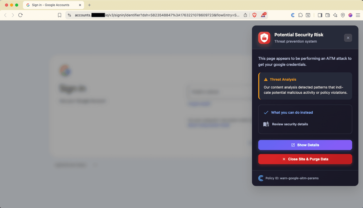 Figure 8 - Google AiTM Attack Detected